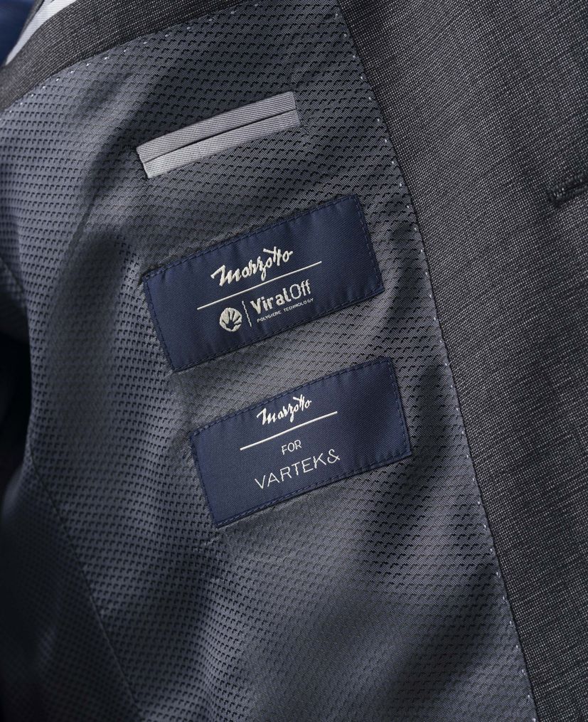Although at first glance it may look like any other suit, the new suit is special, innovative and unique. It is made of Marzotto fabric made of 100% fleece wool with an antiviral coating that eliminates the presence of viruses on the fabric surface.