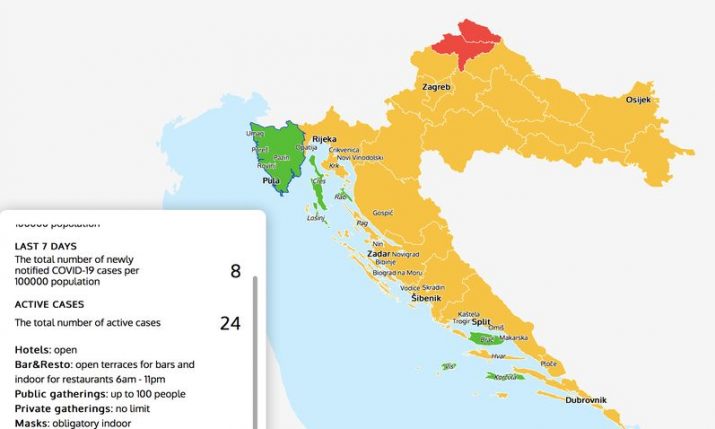 Croatia COVID-19 Map: Check the epidemiological situation, measures, green zones