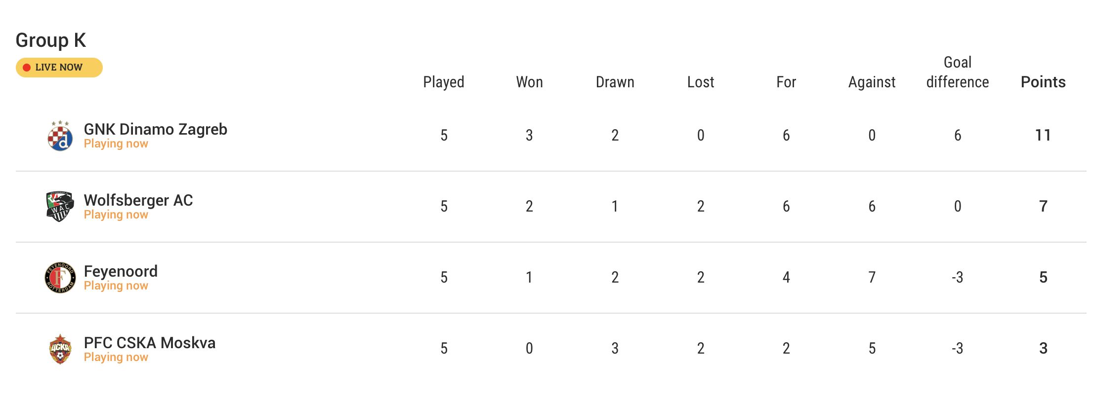 Group K standings (UEFA)