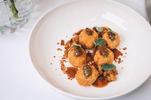 Kroketi od vrganja, pesto od suncokretovih sjemenki i timijana, marmelada od vrganja, crumble od čvaraka (4)- Lili Bašić photo by croatiaweek December 3, 2025 in Sign up to receive the Croatia Week Newsletter