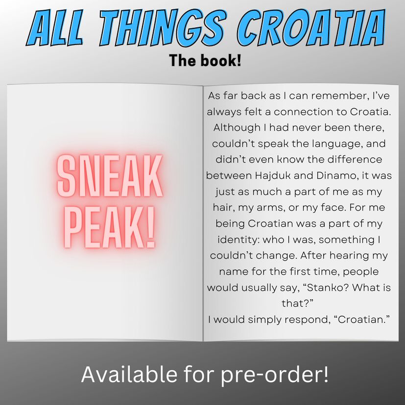 “As far back as I can remember, I’ve always felt a connection to Croatia. Although I had never been there, couldn’t speak the language, and didn’t even know the difference between Hajduk and Dinamo, it was just as much a part of me as my hair, my arms, or my face. For me, being Croatian was a part of my identity: who I was, something that couldn’t change. After hearing my name for the first time, people would almost always ask, “Stanko? What is that?” I would simply respond, “Croatian,” he writes, before adding.