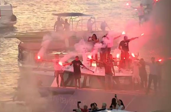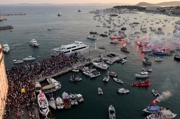 Oliver then departed on catamaran and headed off in the sunset towards Vela Luka on the island of Korcula as a fleet of small boats followed in its trail.