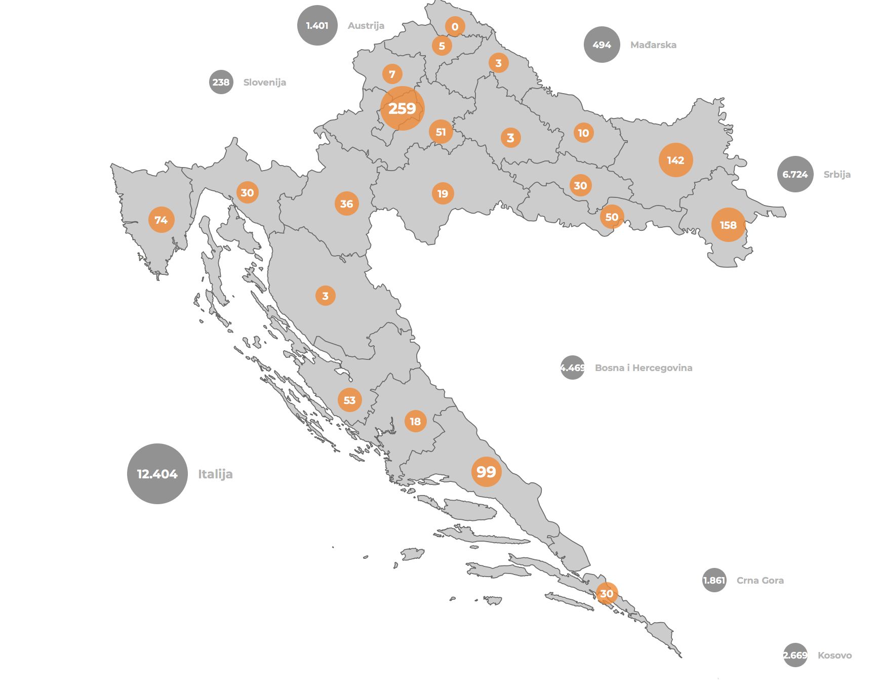 Most of the active cases are still in the capital Zagreb, Osijek-Baranja and Split-Dalmatia counties.