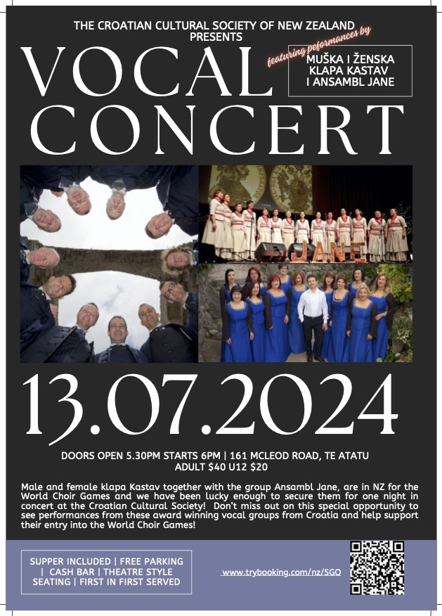 In addition to their performances at the World Choir Games, both groups will grace the stage for a special one-off concert at the Croatian Club in Auckland on Saturday July 13th, 2024 6pm.