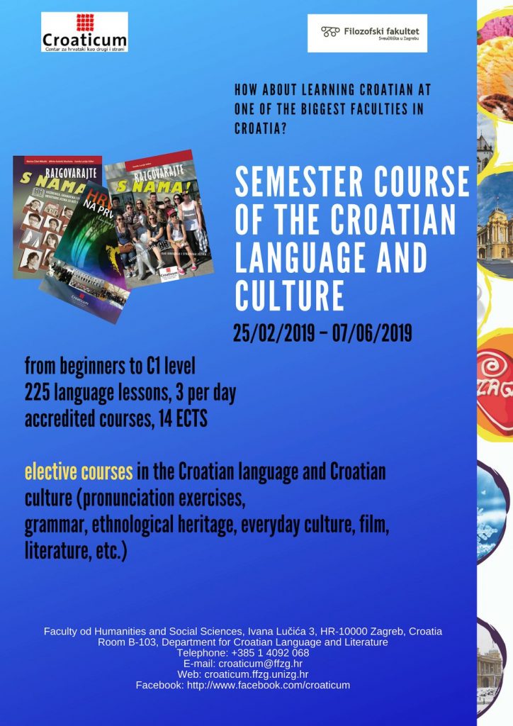 ZAGREB, 6 February 2019 – Croaticum – Centre for Croatian as a Second and Foreign Language at the Department for Croatian Language and Literature, Faculty of Humanities and Social Sciences in Zagreb is taking enrolments for its Croatian language and culture semester course.