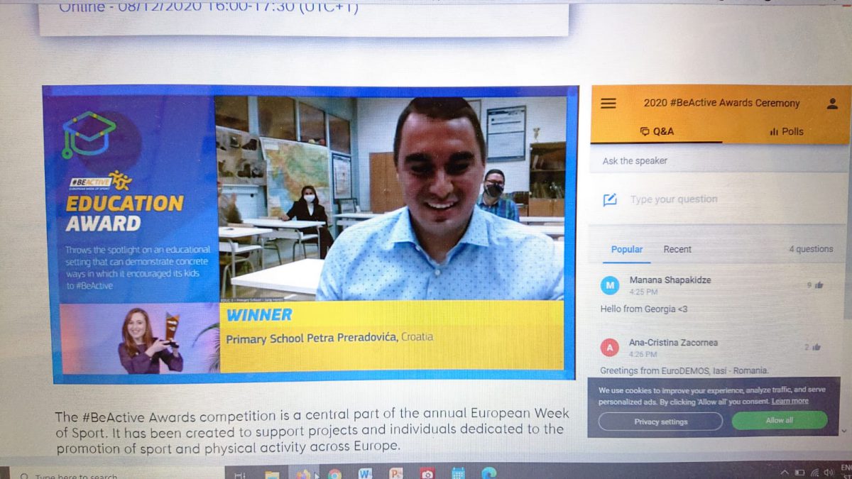 ZAGREB, 9 December 2020 – Petar Preradović Primary School in Zagreb has won an award for the best European sports education project.