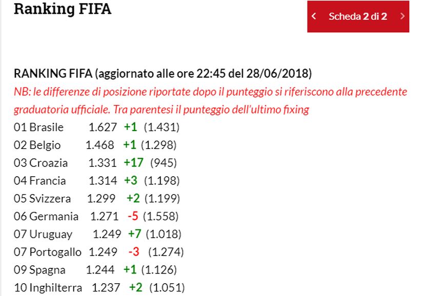 Croatia is now ranked 3rd in the world with 1,331 points thanks to wins against Nigeria, Argentina and Iceland at the World Cup, reports La Gazzetta Dello Sport.