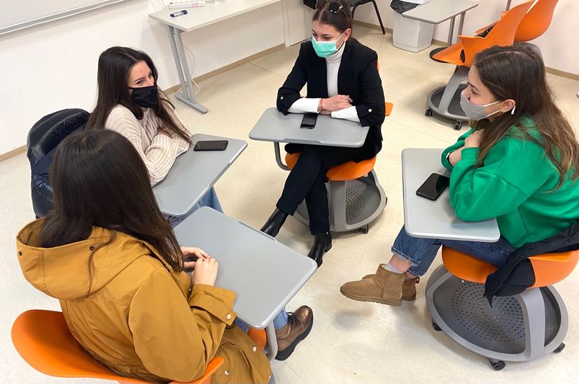 Students attending a club meeting on campus.