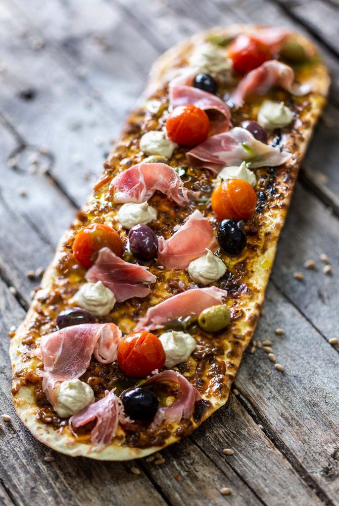 By adding a variety of pizza toppings, the mlinZZa was born. The crunchy mlinci has less carbohydrates than a traditional pizza base and does not contain yeast.