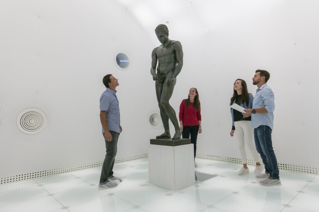 It is the most complete and best preserved among eight known Apoxyomenos statues. The museum tells the original story of the statue which dates to either 2nd or 1st c. B.C., and its name stems from Greek term for an athlete that is cleaning his body from oil, sweat, and sand after exercise or competition.