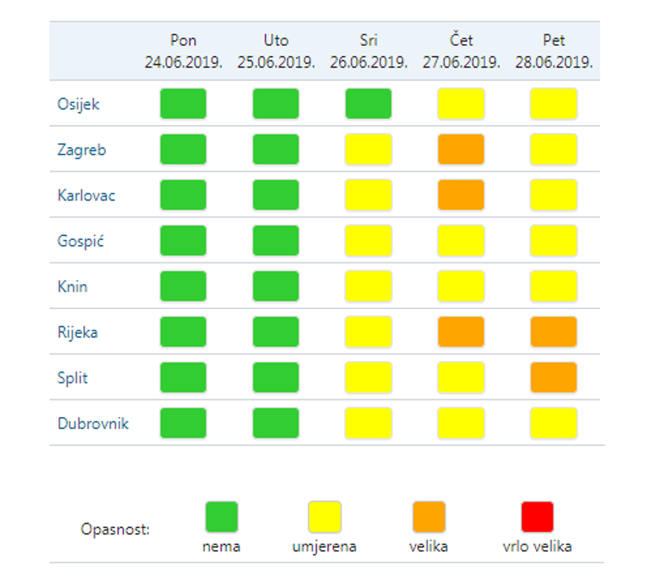 The heatwave will be at its strongest on Thursday and part of Friday with DHMZ issuing warnings for Zagreb, Karlovac, Rijeka, and Split. These days temperatures in excess of 35°C are expected.