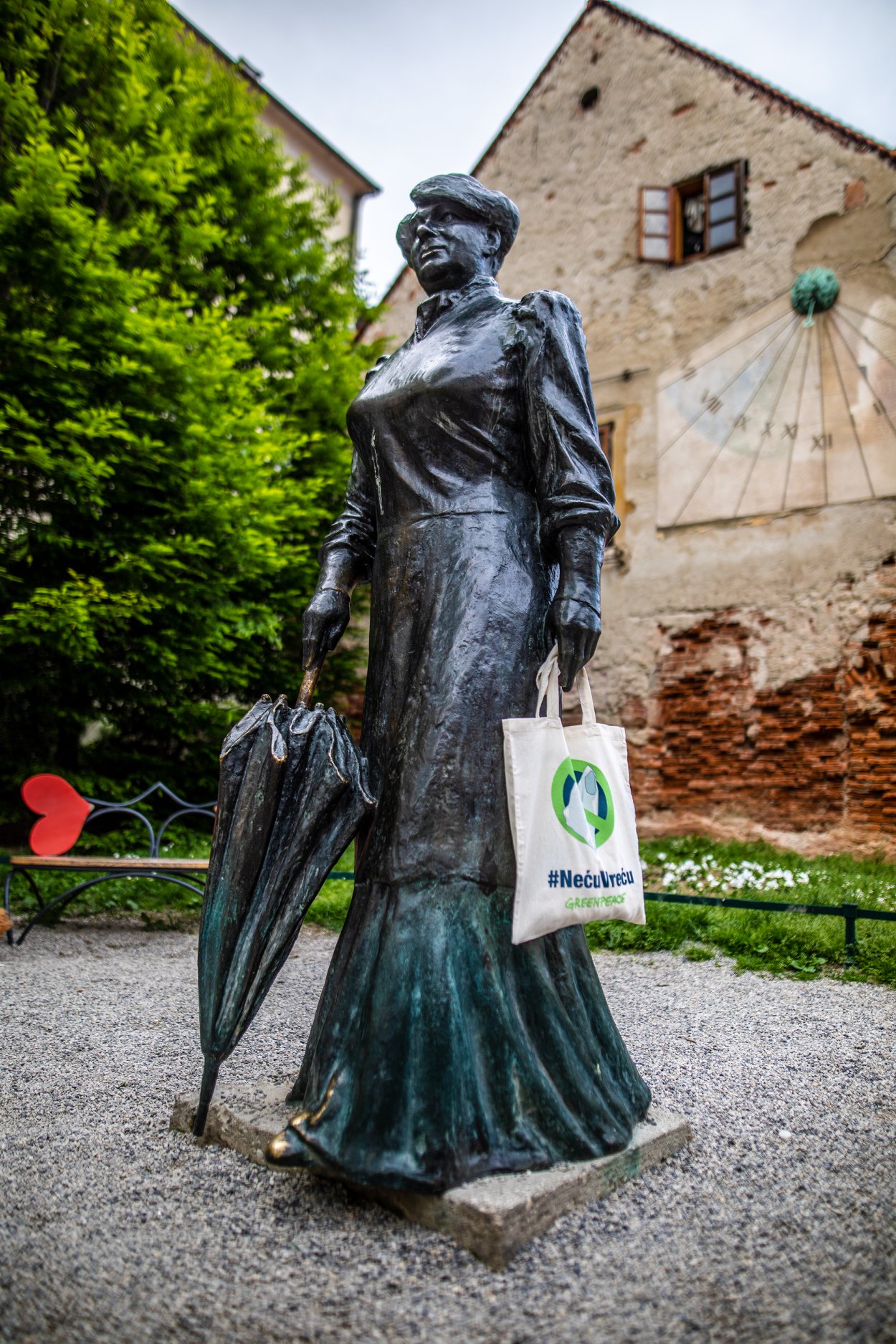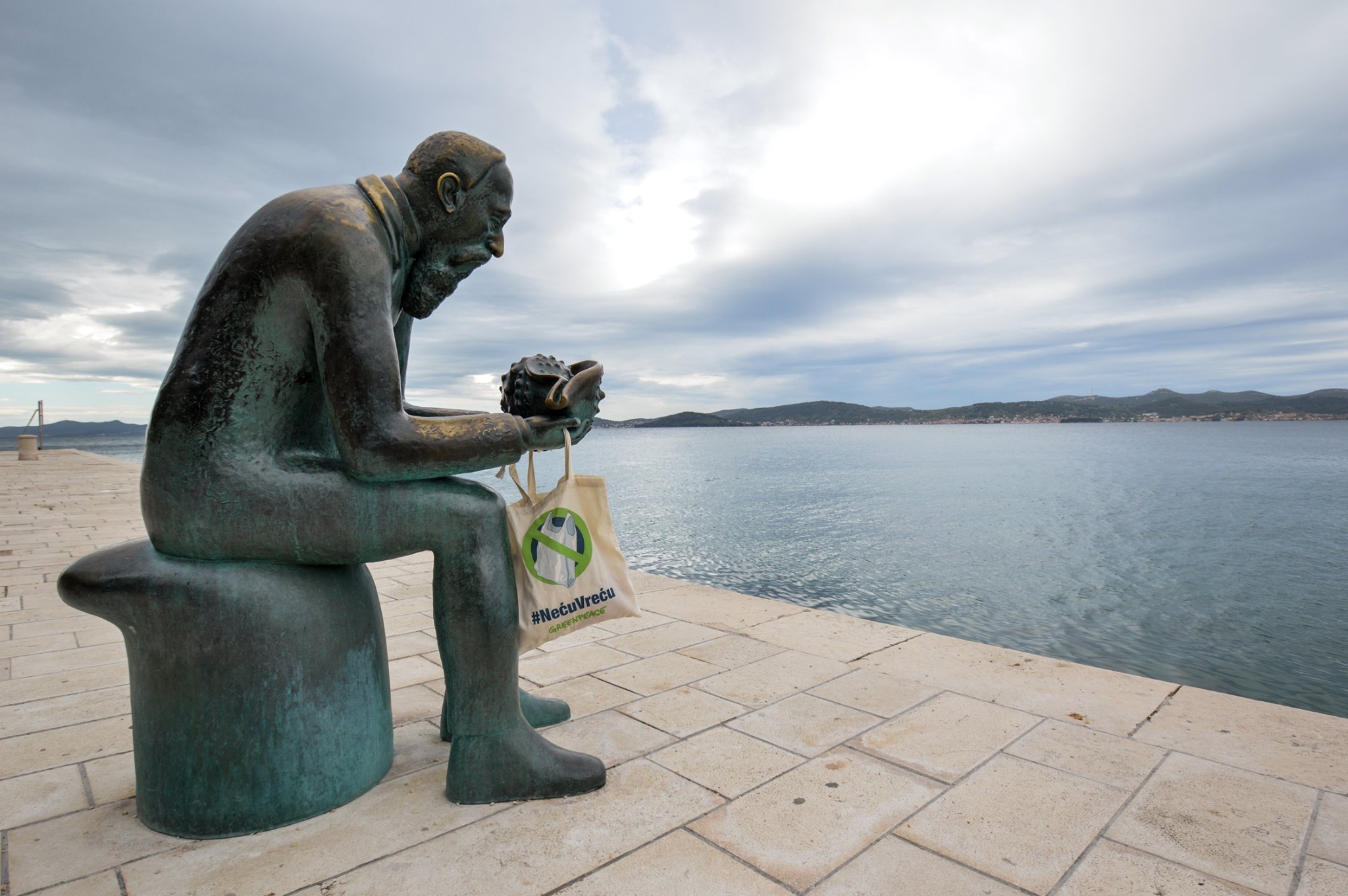 By draping the canvas bags on monuments, Greenpeace want to raise awareness that Croatians consume about 200 plastic bags per capita annually, or 830 million plastic bags in total. That amount of plastic could wrap the Earth nine times, they warn.
