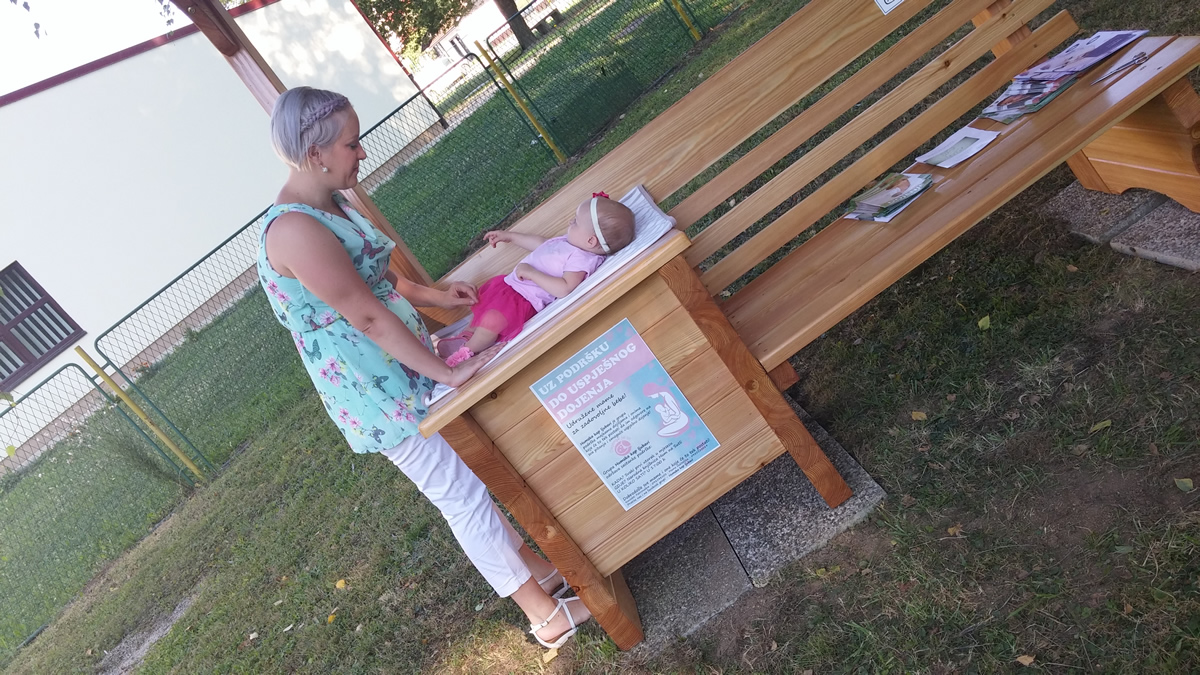 The group, which formed 3 years ago, successfully placed the bench during World Breastfeeding Week. One of the group’s members and mother Ines Petek was behind the project ‘Breastfeeding is ‘in’ – we breastfeed our babies everywhere’, and with financial support from the local council was able complete have the bench made.