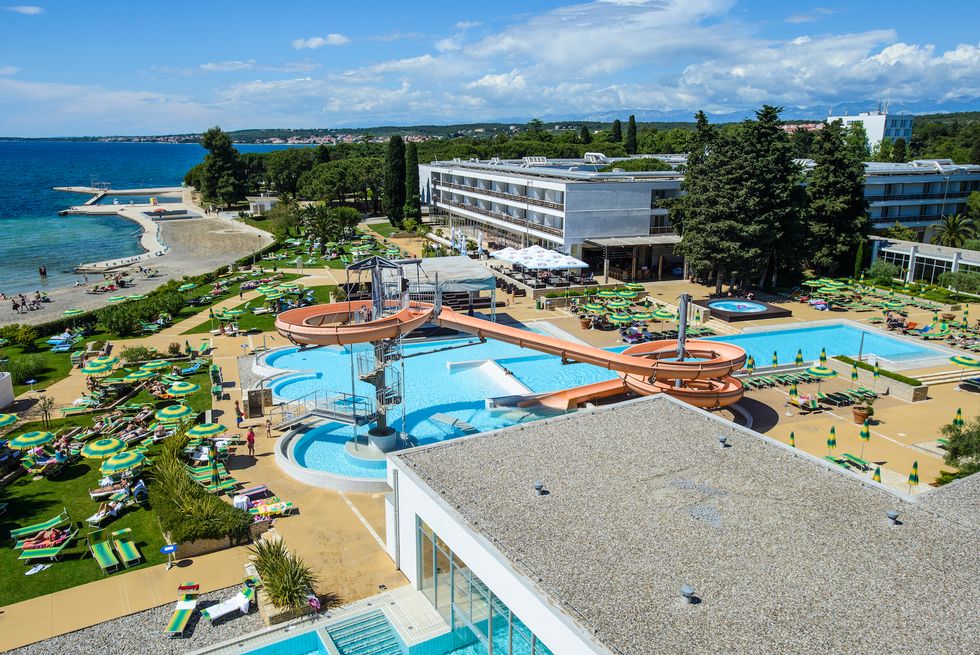 The family club complex is located right on the 1.7 km long beach in Zadar is tailored for families, offering a wellness & spa, spacious pool area with giant water slide, a children’s adventure playground, wading pool, kids disco and professional child care and animation.