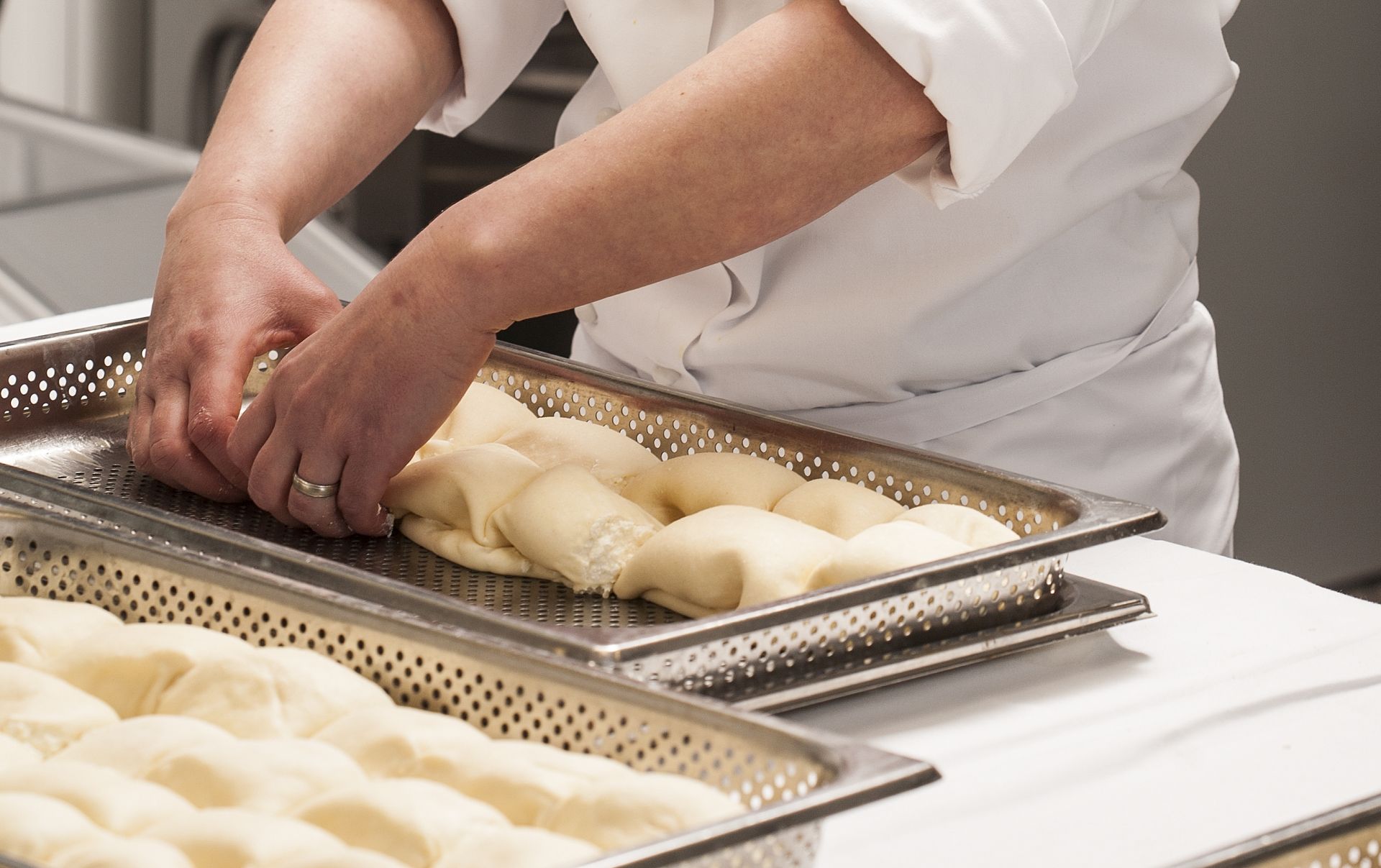 “They are made by hand and I believe that is why they are especially appreciated. The dough is kneaded and stretched across the table until it is quite thin, like a sheet. It is then filled with fresh cheese and shaped with a thin porcelain plate. It is then steamed and baked with a fine cream in the oven until the štrukli turns golden.