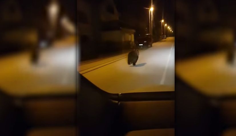Some rare footage of a bear legging it down the street in the town of Gospić in Croatia’s Lika region.
